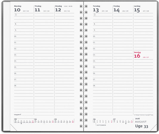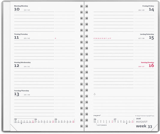 WEEK PLANNER INTERNATIONAL TVÆRFORMAT SØLV VINYL 2026