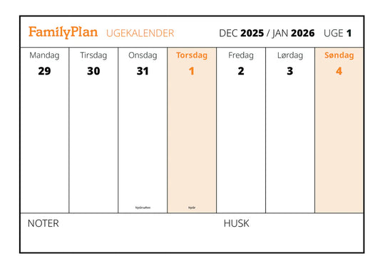 FAMILYPLAN FAMILIEKALENDER VEJR 2026