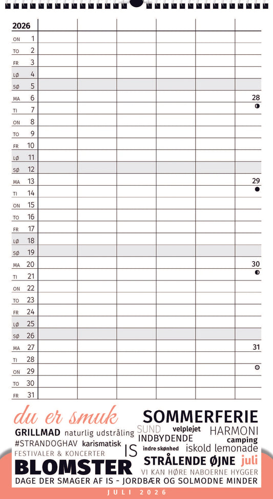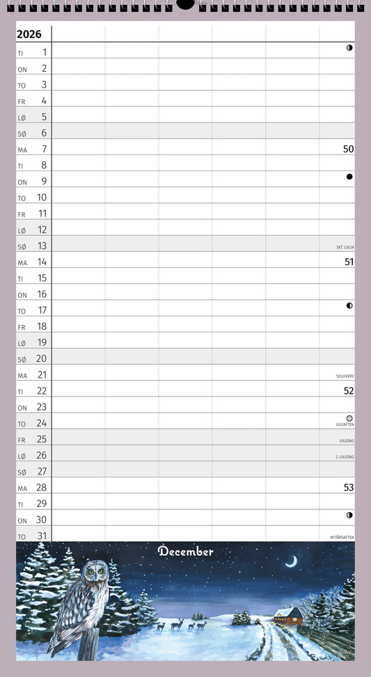 ÅRET RUNDT 2026 SORT/HVID M. 3 KOLONNER