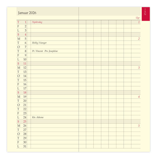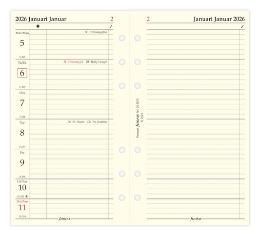 FILOFAX REFILL UGE PR. OPSLAG VERTIKAL POCKET 2026