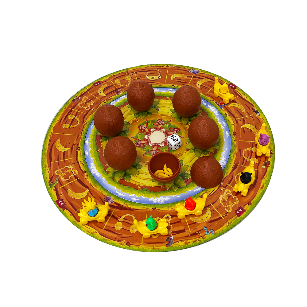 Aberne er tilbage i en hæsblæsende jagt på banankronen. Kast med terningen og ryk din seje bananbil. Feltet du lander på, fortæller, hvad du må gøre: samle bananer, bytte kokosnødder eller endda hemmeligt blande dem for at forvirre dine modstandere! Brug bananerne til at komme først i mål, men husk, du kan kun vinde, hvis du ved, i hvilken kokosnød banankronen gemmer sig! Coco Crazy – Bananas! er fuld af grin, fart og sjove overraskelser for hele familien!