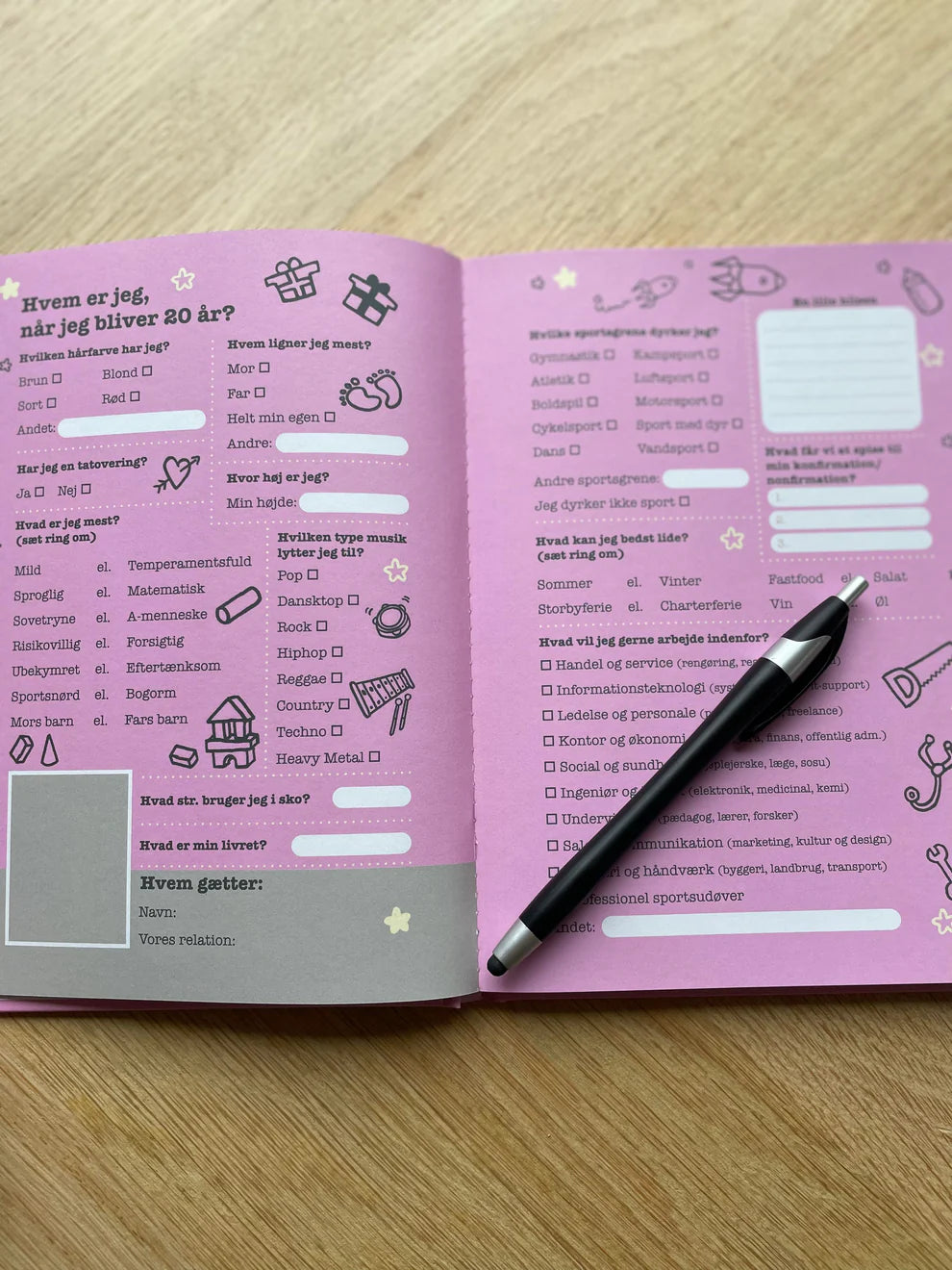 Hver gæst har 2 sider med spørgsmål