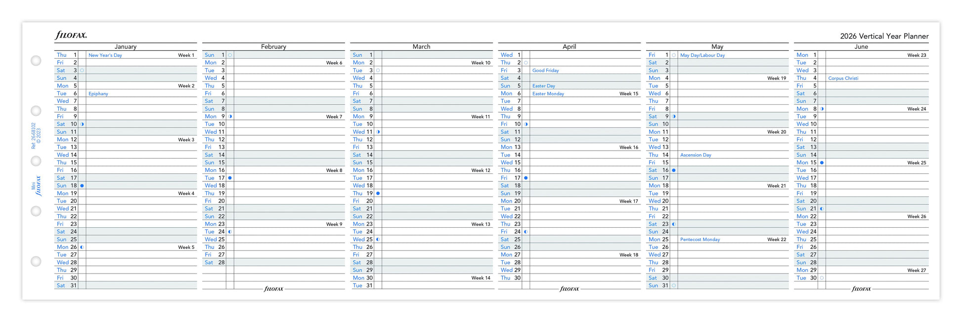 FILOFAX ÅRSOVERSIGT MINI VERTIKAL 2026 ENGELSK