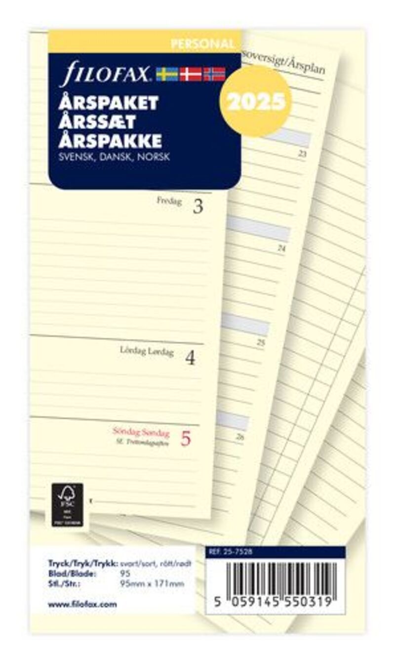 FILOFAX ÅRSPAKKE PERSONAL 2025 UGE PER OPSLAG