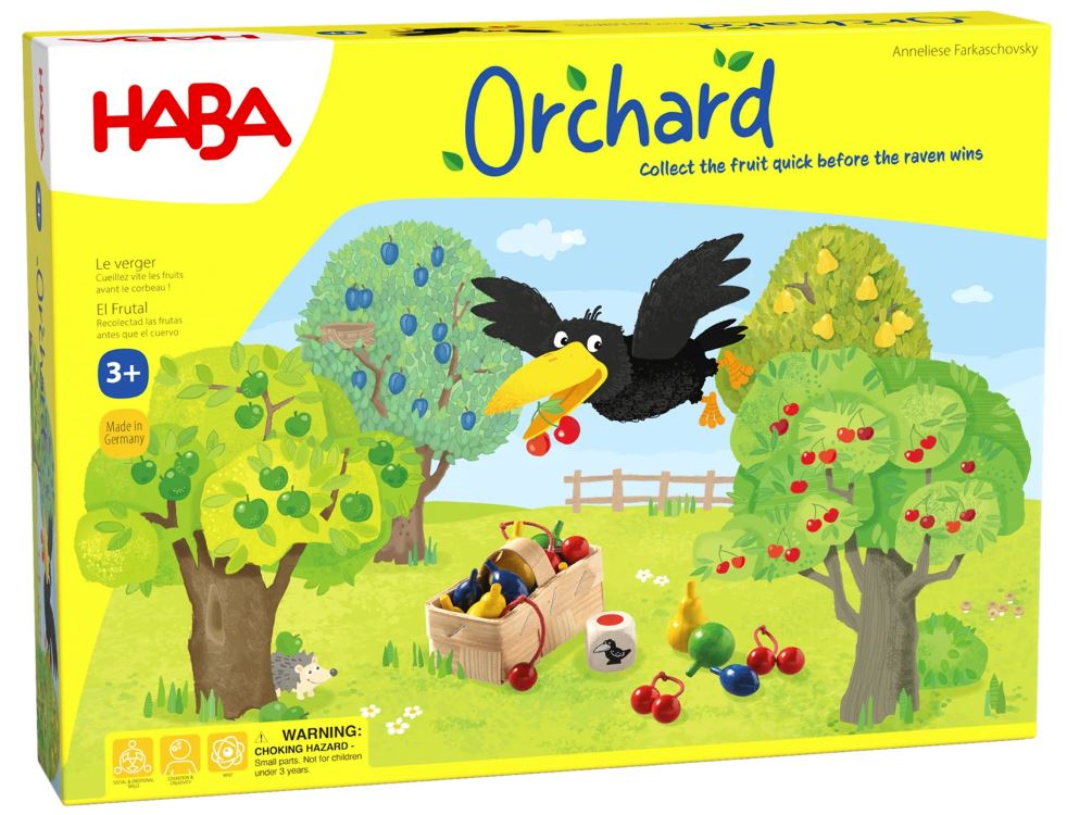 Frugthaven er et af HABAs klassiske spil hvor det gælder om at samarbejde mod den frække ravn som vil stjæle havens frugter. De modne og saftige æbler, pærer, blommer og kirsebær skal plukkes før ravnen æder dem.