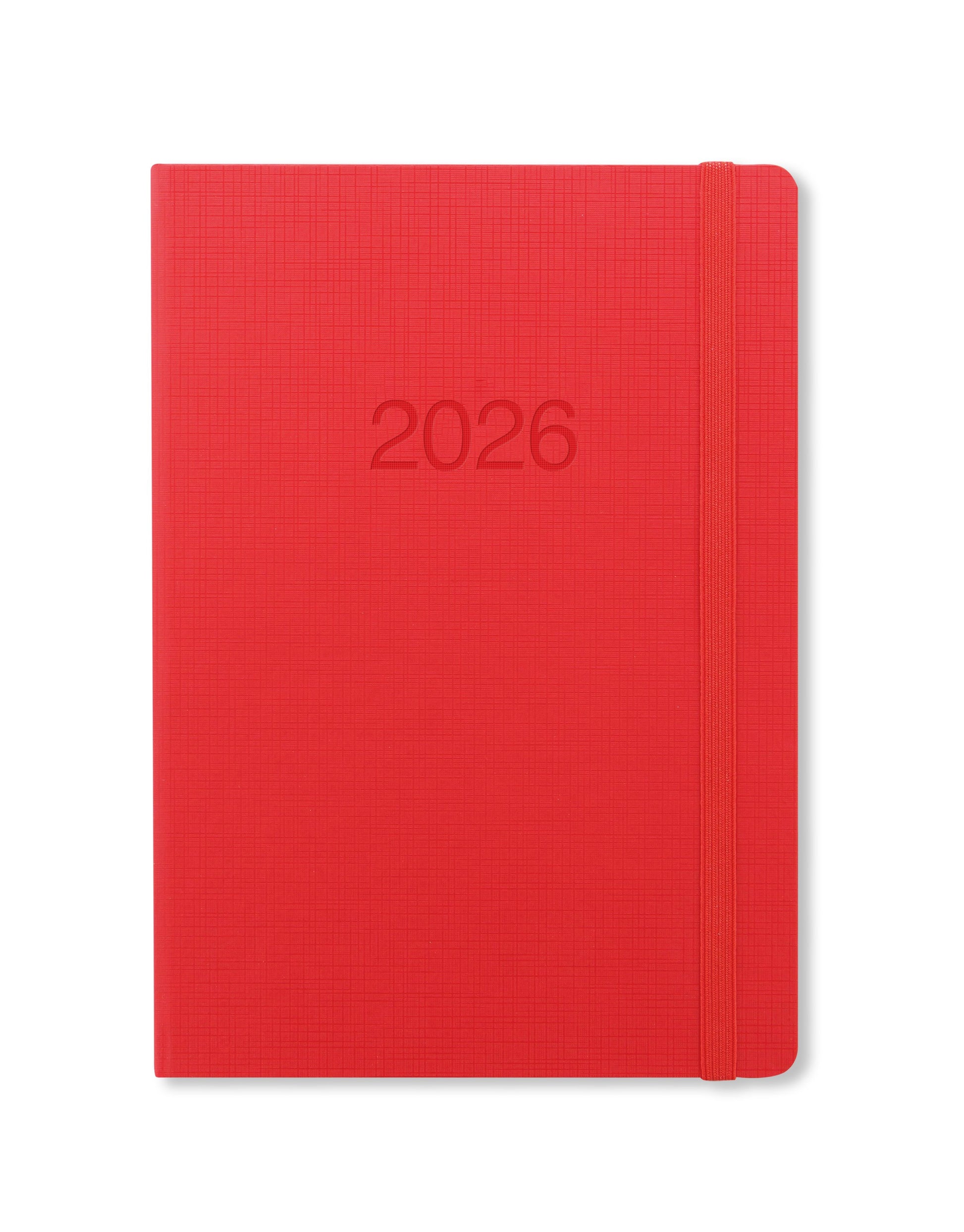Organiser nemt din ugeplan med denne A5-kalender. Omslaget har et stilfuldt gittermønster og farvematchende datoprint. Elastiklukningen gør det nemt at opbevare noter, og layoutet med en uge pr. side giver et godt overblik.