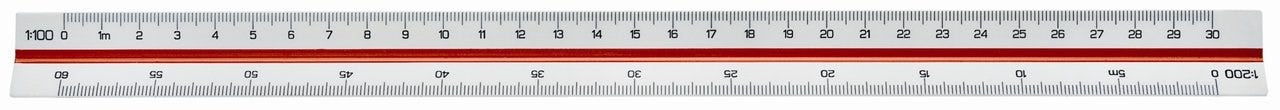 Linex-312 Trekantet Målestok 30cm. Med seks forskellige skalaer. Noter i 2 farver. Leveres i plastetui. Inddeling: 1:100:200:250:300:400:500.