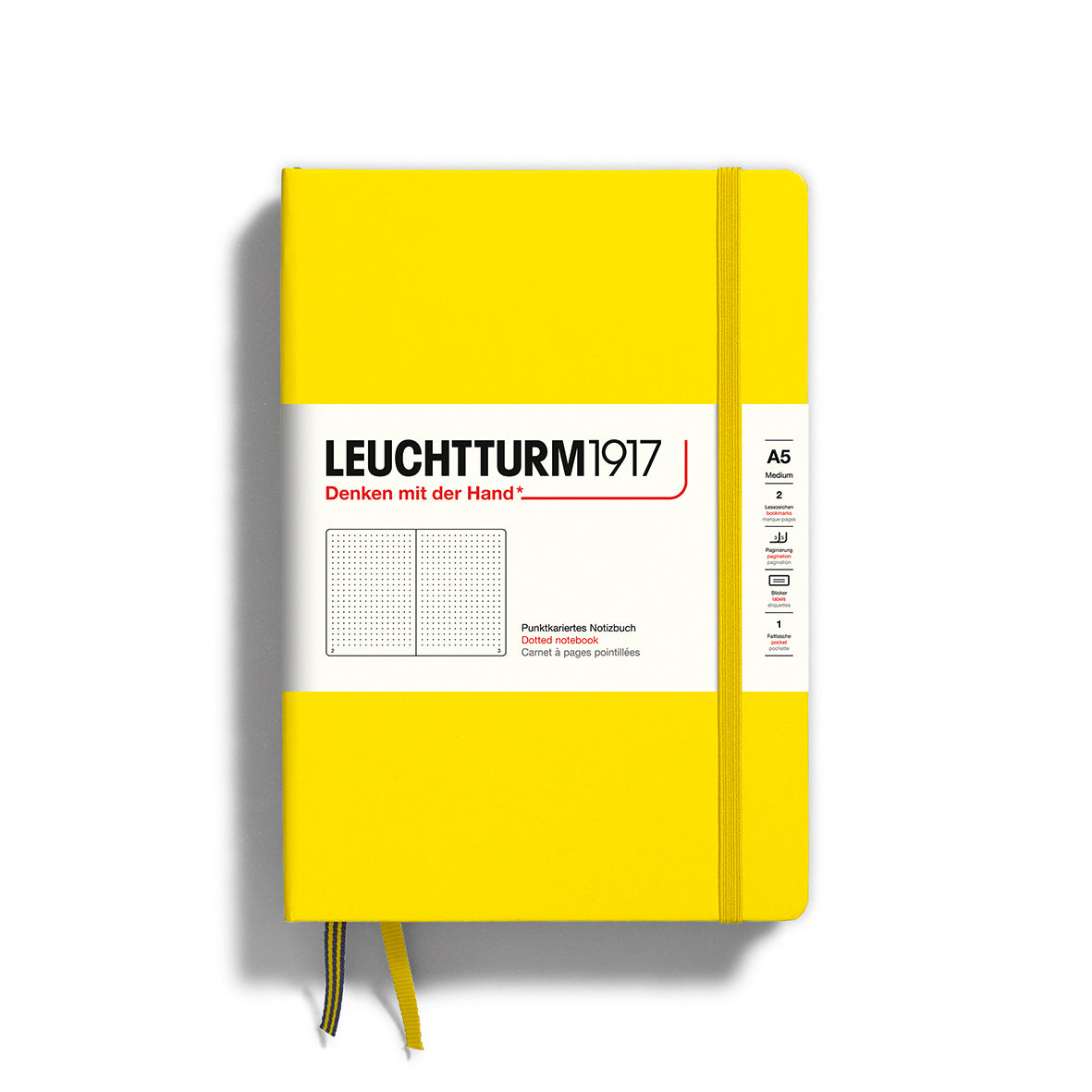 Notesbogen har alle de skønne detaljer, som vi kender fra Leuchtturm1917, sidetal, indholdsfoetegnelse og praktisk lomme. Notesbogen med prikker fås med omslag i virkelig mange farver - med matchende elastik og bogmærke.