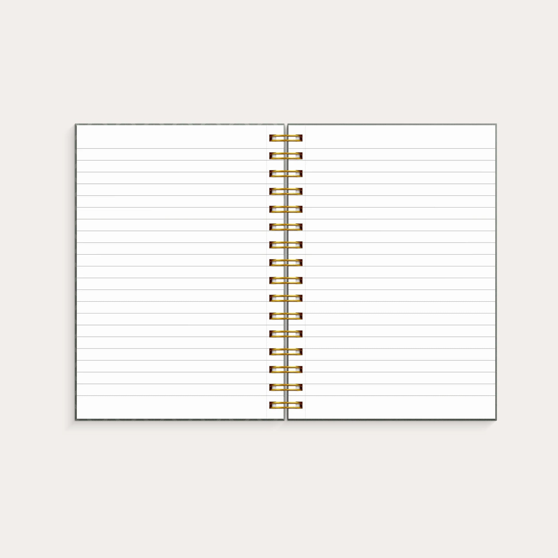 Flot og eksklusiv notesbog, som er perfekt til alle hverdagens mange noter. Notesbogen er spiralindbundet med et mat kartonomslag og flotte mønsterdetaljer. I bogen finder du 150 linjerede sider i 70 grams FSC-certificeret papir. Format: A5