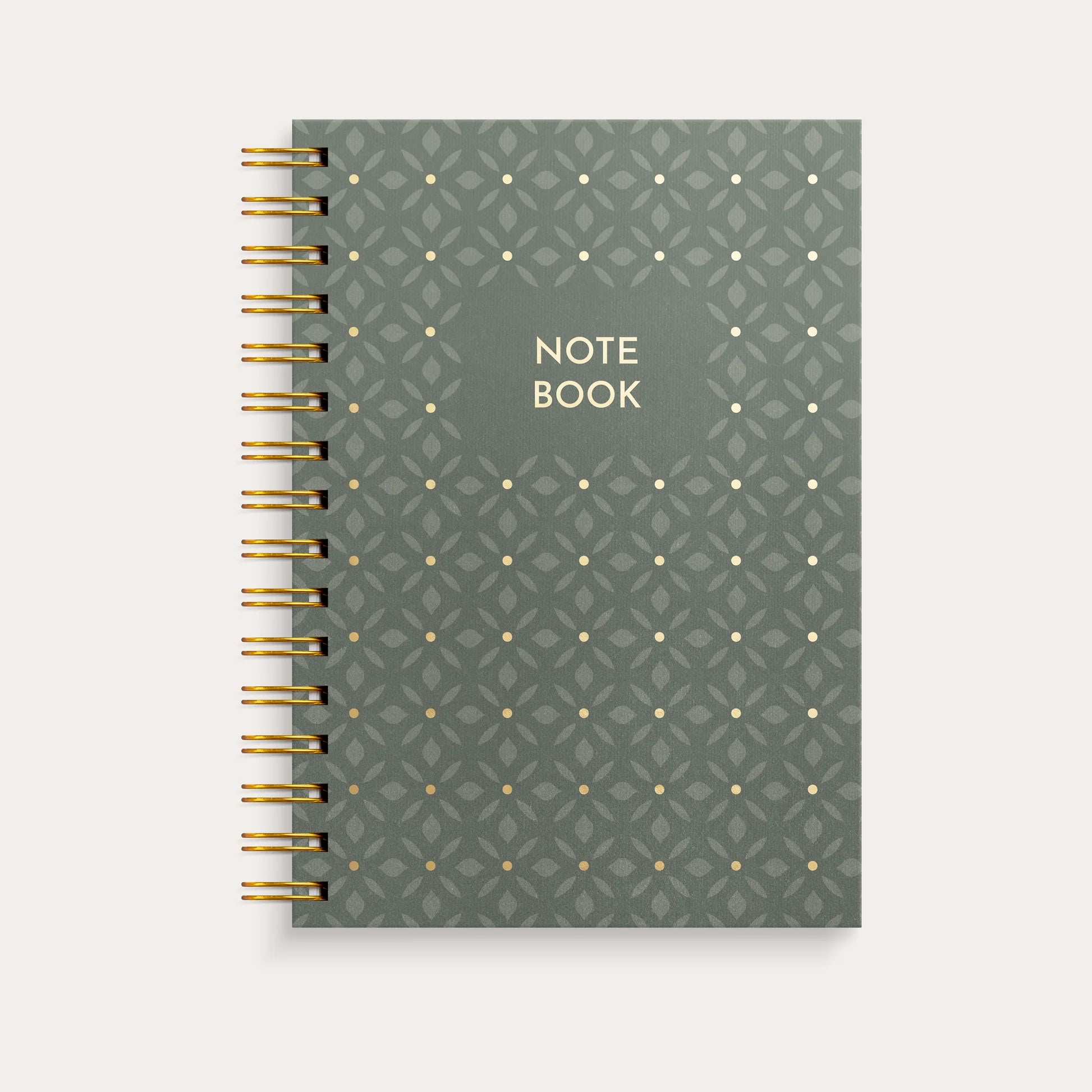 NOTEBOOK A5 GREEN PATTERN SPIRAL LINJERET