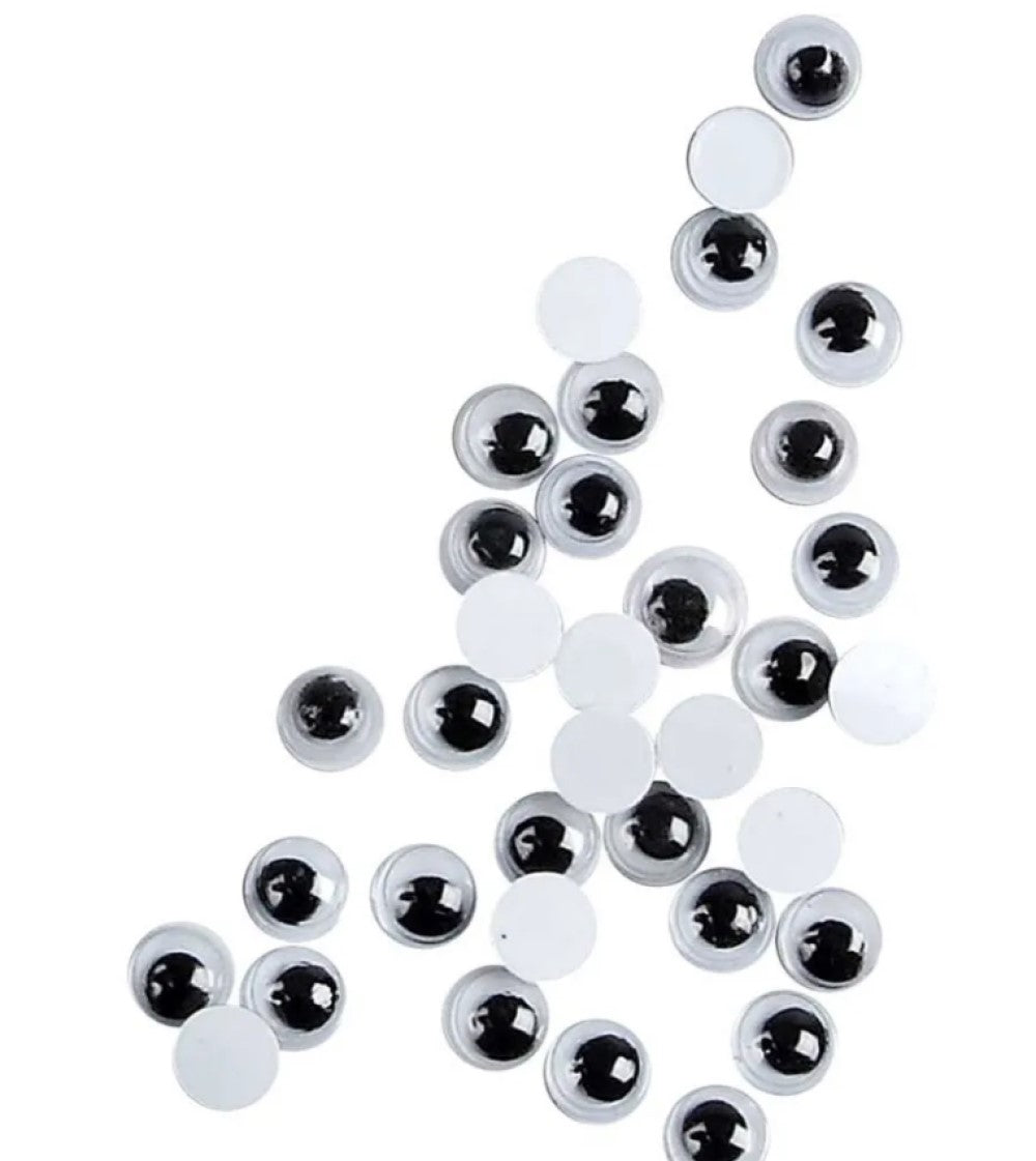 Rulleøjne med bevægelige pupiller, som du kan bruge på alt, der mangler et sjovt udtryk. Øjnene har en flad bagside uden klæb.